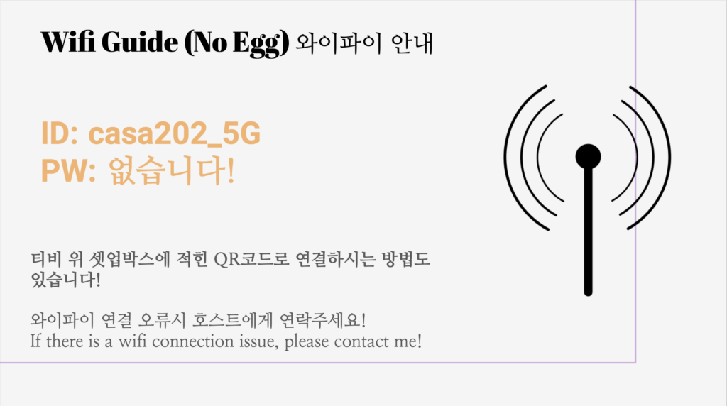 - Too minimal – Just the WiFi password and checkout time