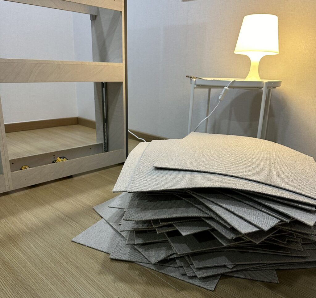 - Tile carpet flooring: Covered the entire floor with carpet tiles to absorb footstep sounds—a crucial detail since noise complaints often stem from impact sounds traveling through floors to units below