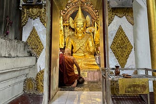 "When the cynic finds herself praying in front of a golden Buddha she wasn't looking for"
