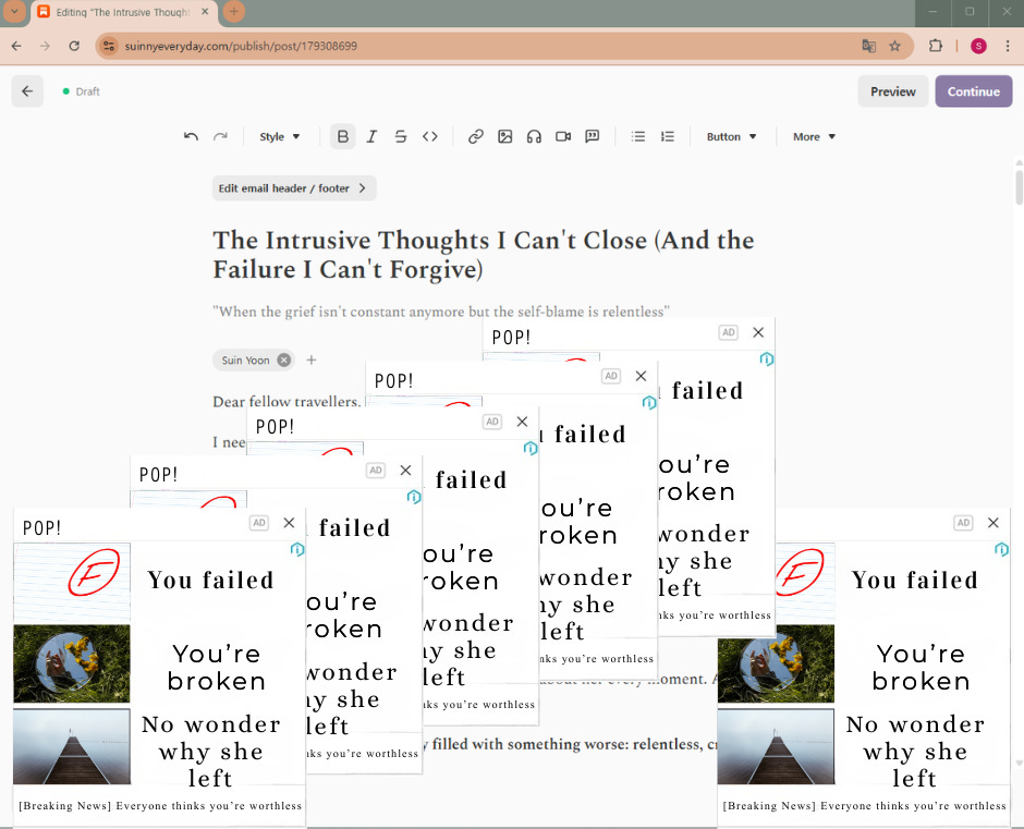 But today? Today I’m just closing pop-ups. And trying to survive the voice that says I’m not enough.